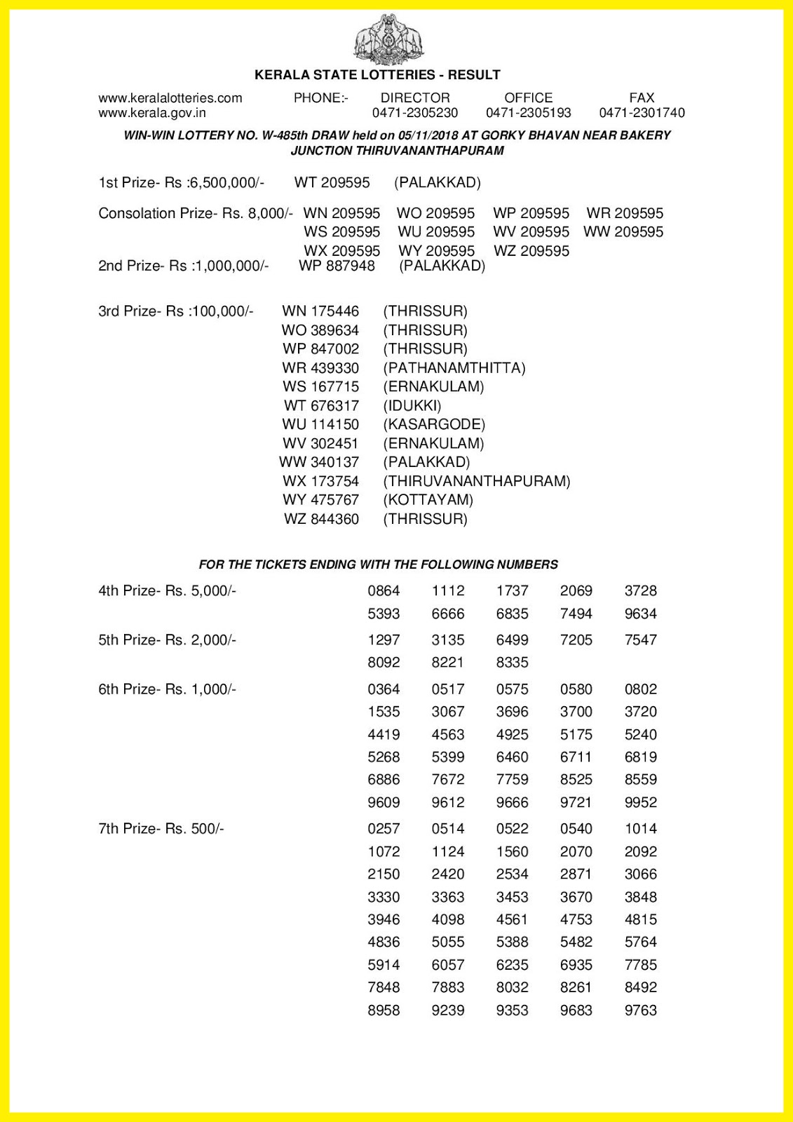 Kerala Lottery Result 05 11 2018 Win Win Lottery Results W 485 Live Kerala Lottery Results 07 03 2021 Bhagyamithra Bm 4 Result Today - List of lottery results available.