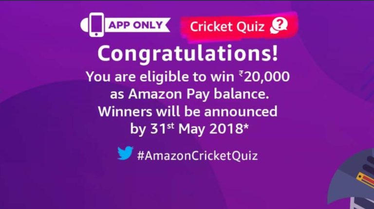 Amazon Answers Cricket Quiz : 5 winners will be selected.