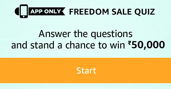 Amazon Freedom Sale Quiz Answer Win Rs 50k Quiz Online Contest Freedom - This contest will commence on 2021 from 08:00 a.m.