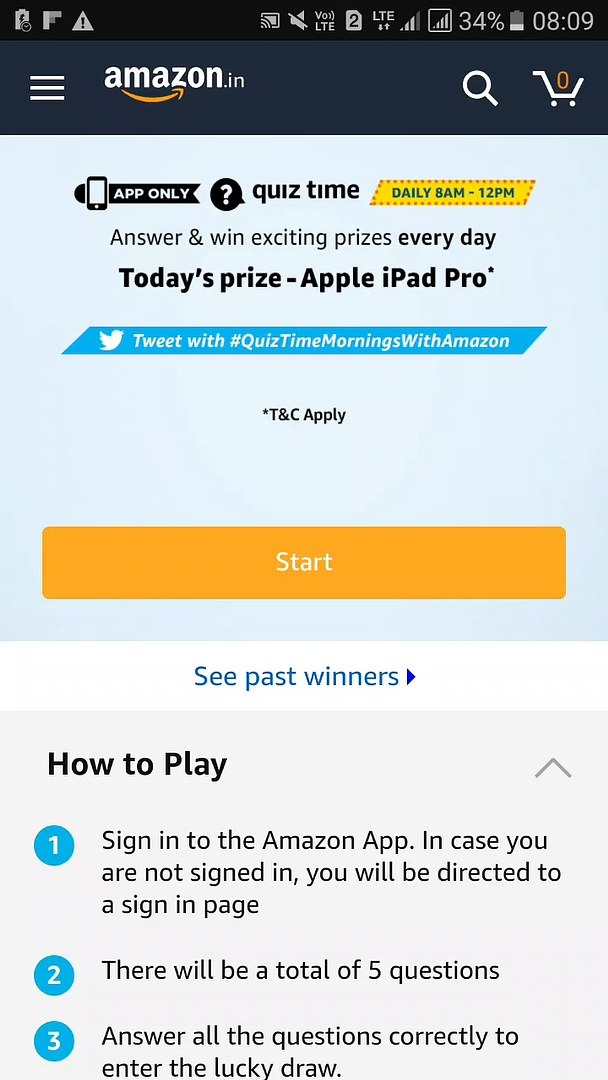 Answer Of Amazon Quiz Of Today Answer Of Amazon Quiz Of Today - Amazon quiz contest's timing is 12 am to 11:59 pm daily.