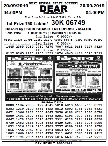 Bangabhumi Ajay Lottery Result Bangabhumi Ajay Lottery Result - West bengal state lottery dear bangasree ichamati.
