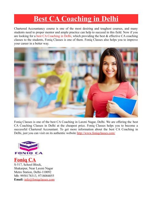 Best Coaching Centre In Delhi For Ca Best Coaching Centre In Delhi For Ca : Get the list of best ias coaching center in delhi with their rank detail, fees & reviews.