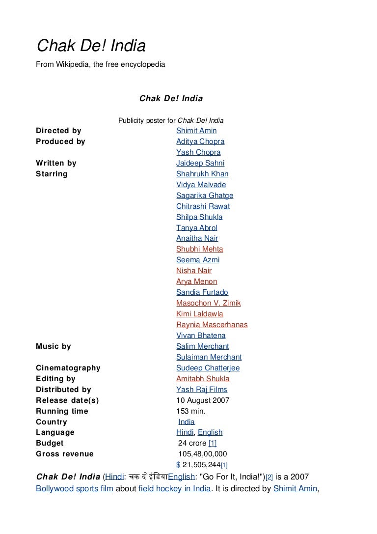Chak De India Lyrics Chak De India 2007 - Chak de india lyrics from chak de india.