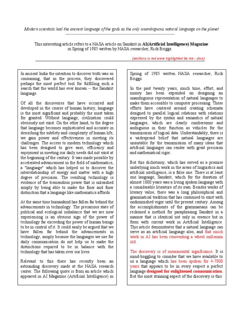 Is Sanskrit Used In Nasa Is Sanskrit Used In Nasa : These claims go back to a single 1985 paper by rick briggs25 in which briggs.