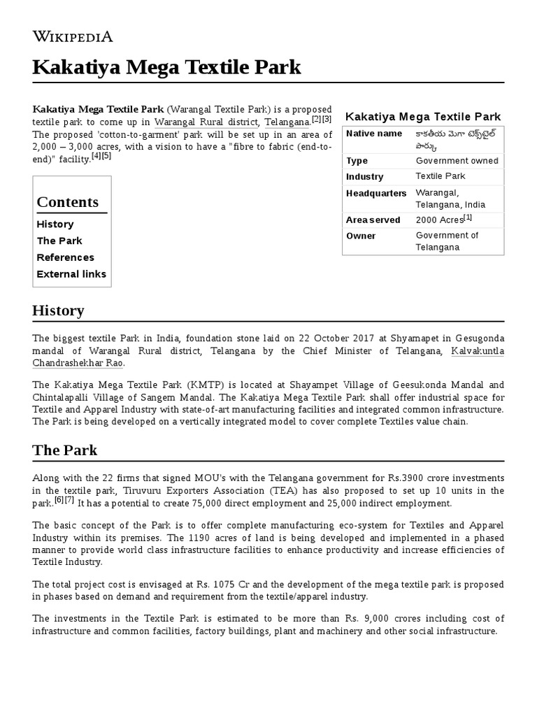 Hamara Warangal On Twitter Kakatiya Mega Textile Park Recapturing Past Glory Of Warangal Hon Ble Cm Sri Kcr To Lay Foundation Stone For Kmtp On Oct 22 Today Ktrtrs Https T Co Bj1c2ls2te - Kakatiya mega textile park, warangal.pdf.