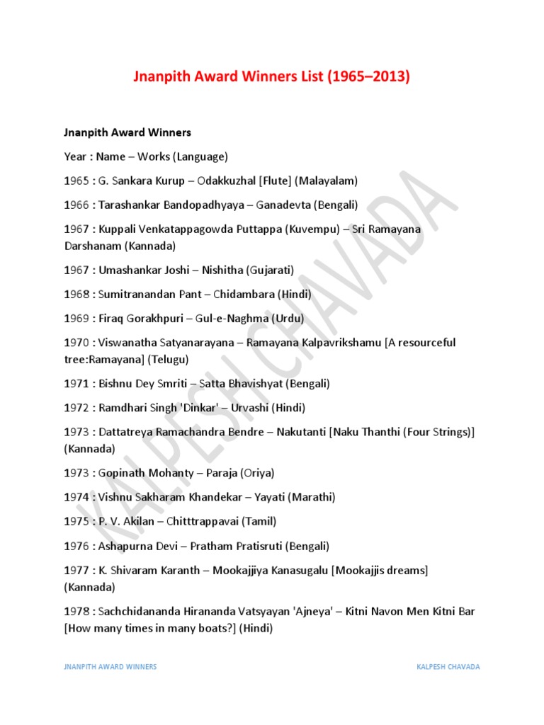 Kannada Jnanpith Award Winners In Kannada Kannada Jnanpith Award Winners In Kannada : The prize carries a cash award, a citation, and a bronze replica of vagdevi (saraswati), the goddess of.