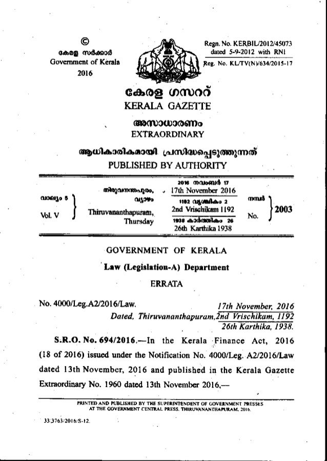 Kerala Finance Act 2016 - This certificate is issued based on the details given in the application, local enquiry, facts and records produced and notification published in the kerala gazette no.