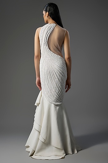 Ivory Embroidered Mermaid Gown Design By Gaurav Gupta At Pernia S Pop Up Shop 2021 - Mermaid lehenga skirts heightened the flirty feel underlying the whole collection.