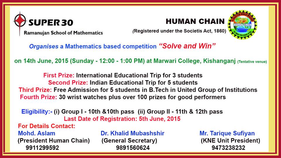 Kishanganjbihar Com Web Portal Of Kishanganj District Town Of Bihar Welcome To Kishanganj Anand Kumar S Super 30 To Organise Solve And Win Competition In Kishanganj On June 14 - It hunts for 30 meritorious talents from among the economically.