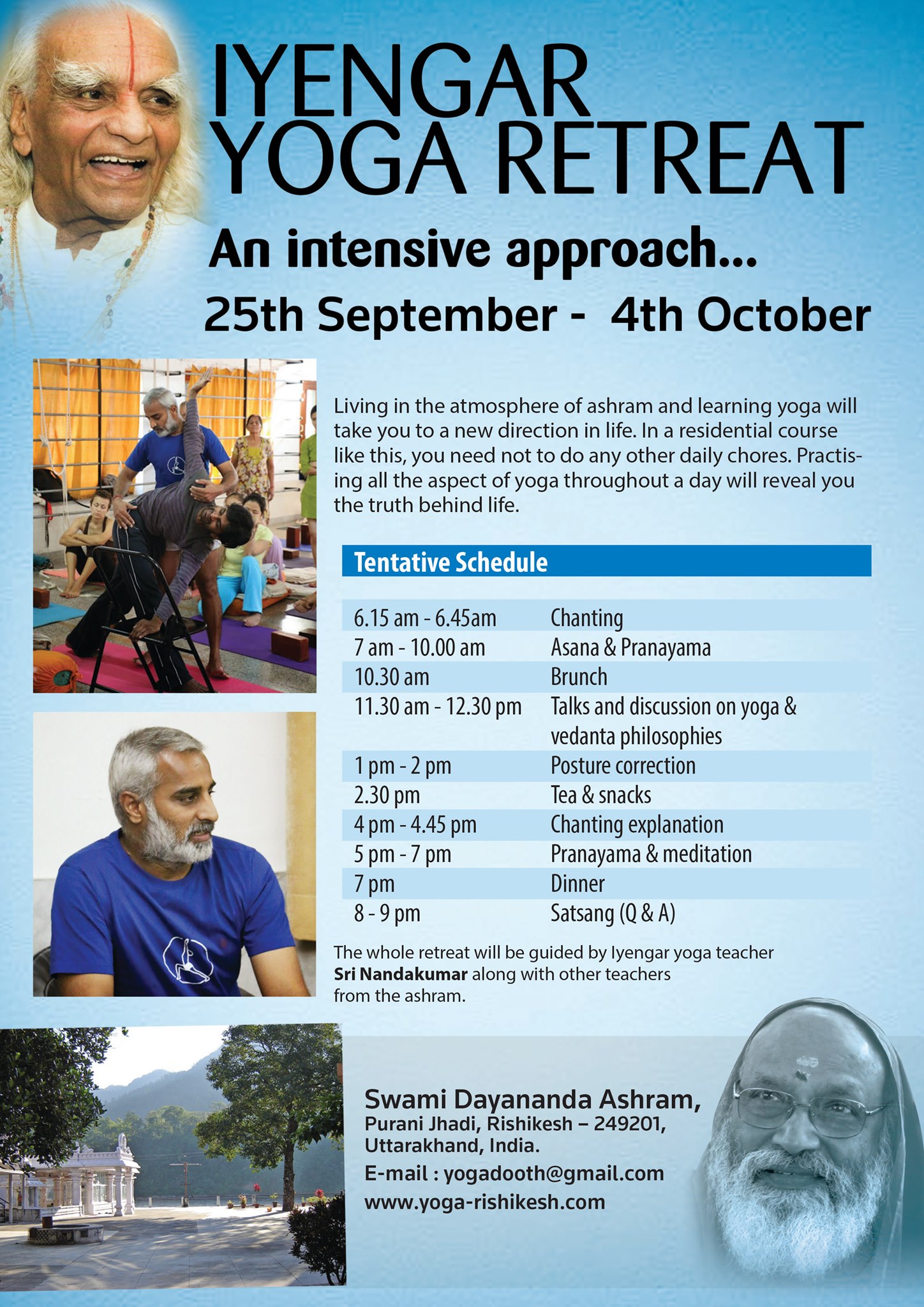 10 Day Iyengar Yoga Retreat In Rishikesh North India 25 Sep 2019 - The yoga studio is fully equipped and ideally situated behind the ashram temple.