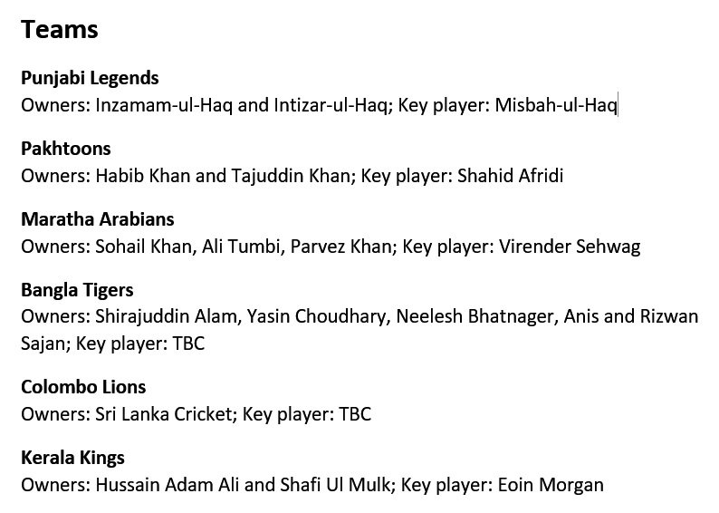 T10 League Team Owners T10 League Team Owners : T10 league officials in talks with ecb about hosting t10 tournaments.