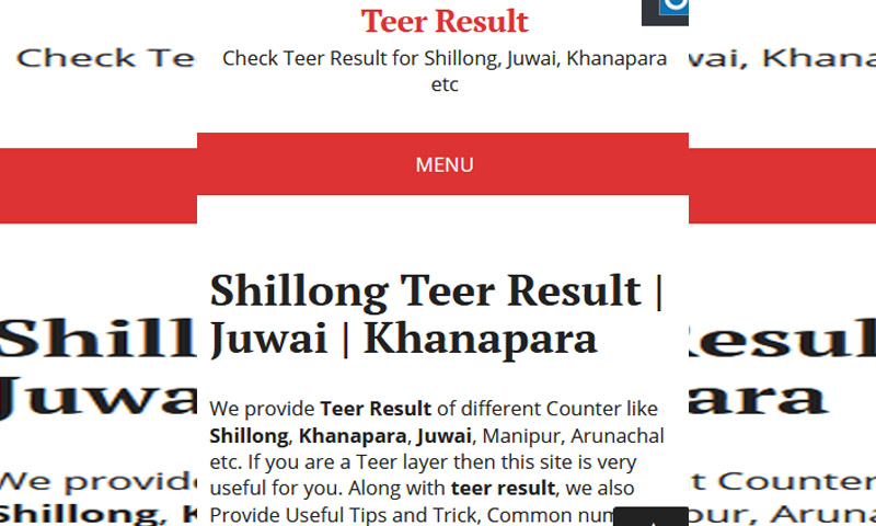 Teer Shillong Juwai Result / Also see the guwahati and manipur result.