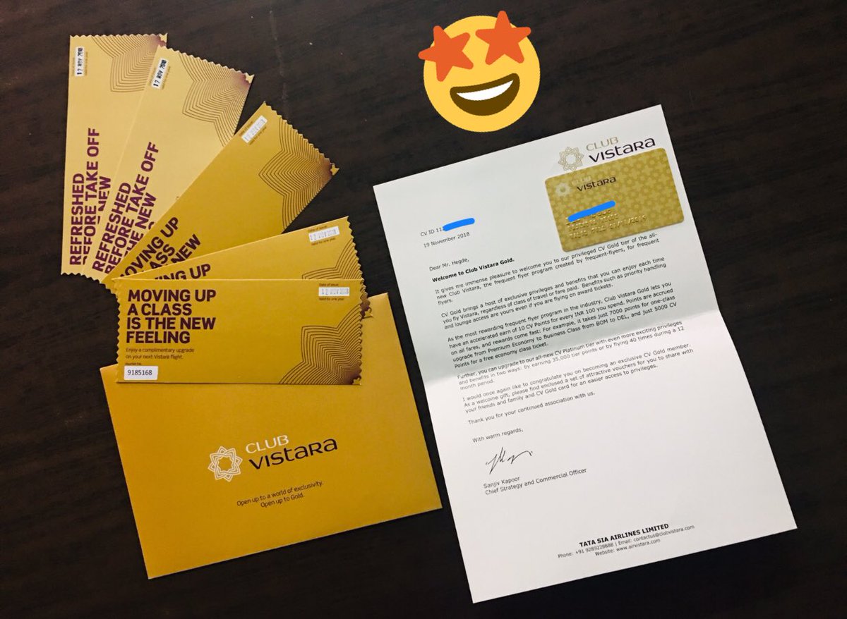 Vistara Gold Membership Vistara Gold Membership / As a complimentary welcome gift, the card offers a business class flight ticket and a club vistara gold membership.